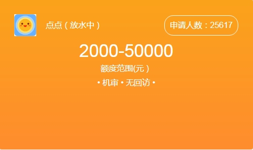众安点点借款是众安保险旗下的产品,贷款额度在2000-50000左右,平均放款金额1万左右,目前申请的主要条件有身份证、储蓄卡、年龄在21-55岁、征信良好,符合授信条件的用户。如果个人征信不好,试了可能也多此一举。审核通过的话,放款非常快,利息也还不错,有需要的可以考虑。