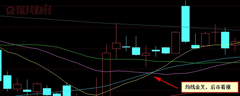在股票市场中,若是短期均线自下而上突破长期均线形成了一个明显的交叉,这个交叉就被称为金叉,反之若是自上而下突破那就是死叉。一般情况下,均线指标可以代表一段时间内所有投资者买卖股票的平均交易价格。当均线金叉形态出现时,意味着短期内股票的交易成本已经超过长期交易成本,这是股价已经进人上涨行情中的信号。所以投资者可以参考两条均线间的金叉形态来一次性建仓买人股票,也可以参考多条均线间相互完成金叉形态来制定分步建仓策略。